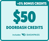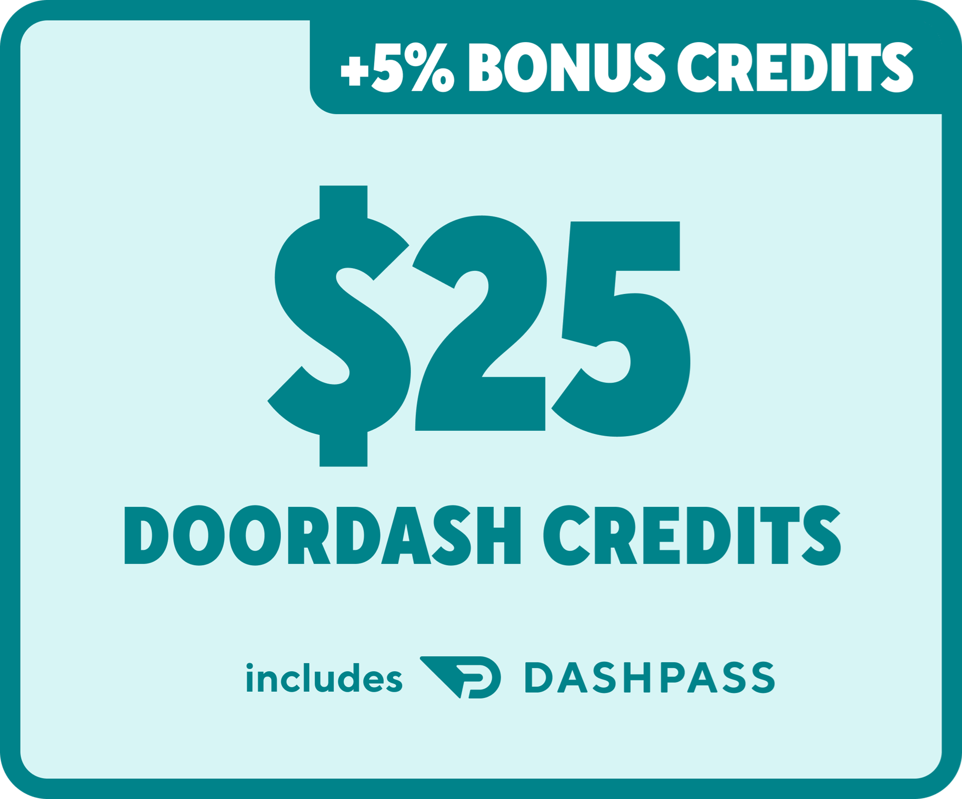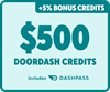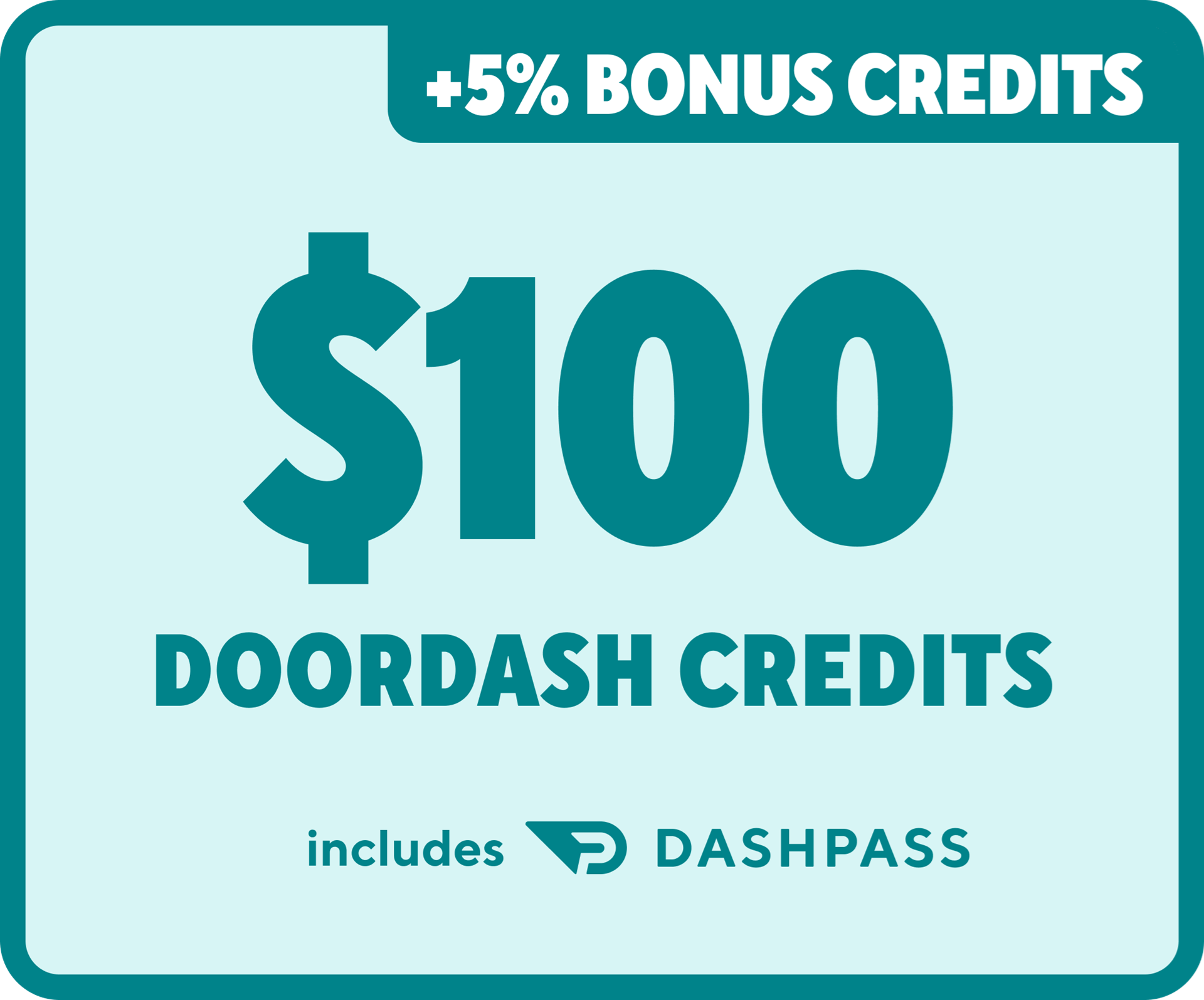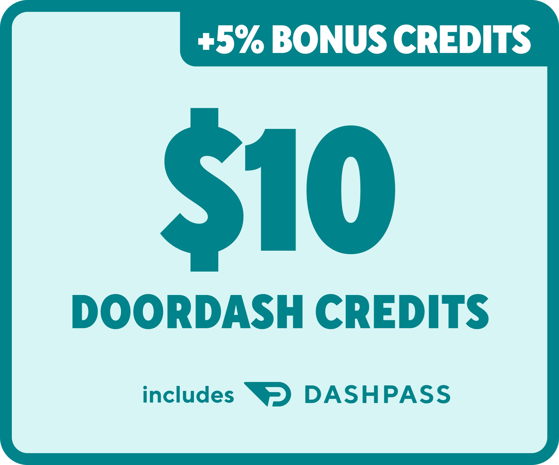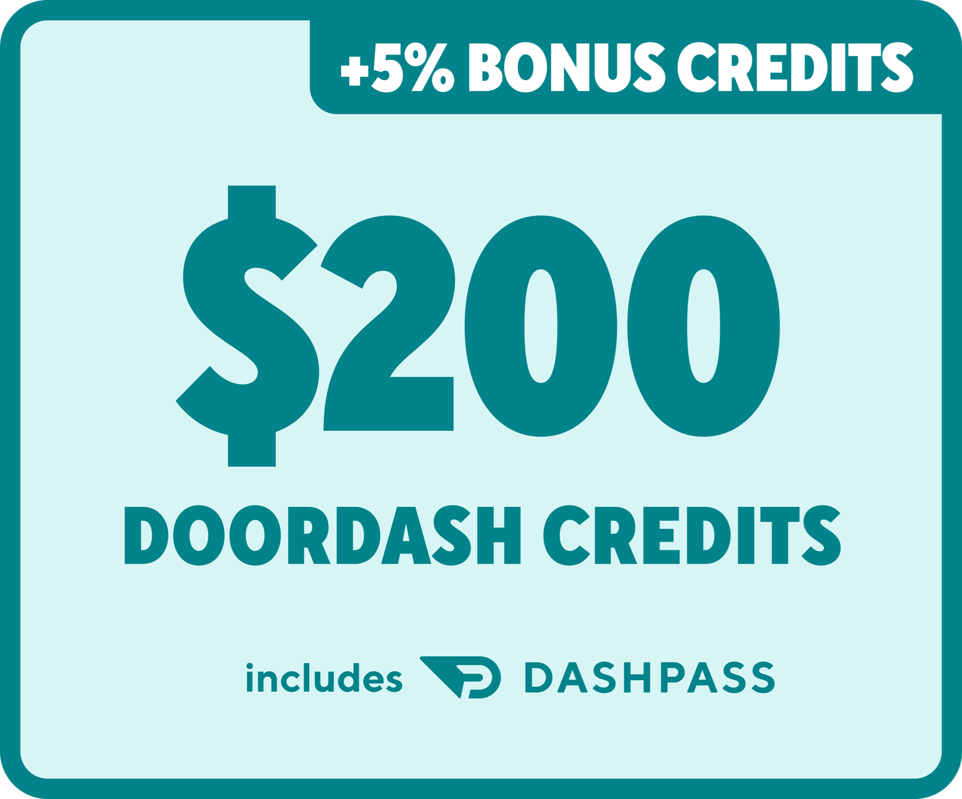 Purchase additional DoorDash credits with your Dining Plan, and receive an extra 5% in Bonus DoorDash Credits!