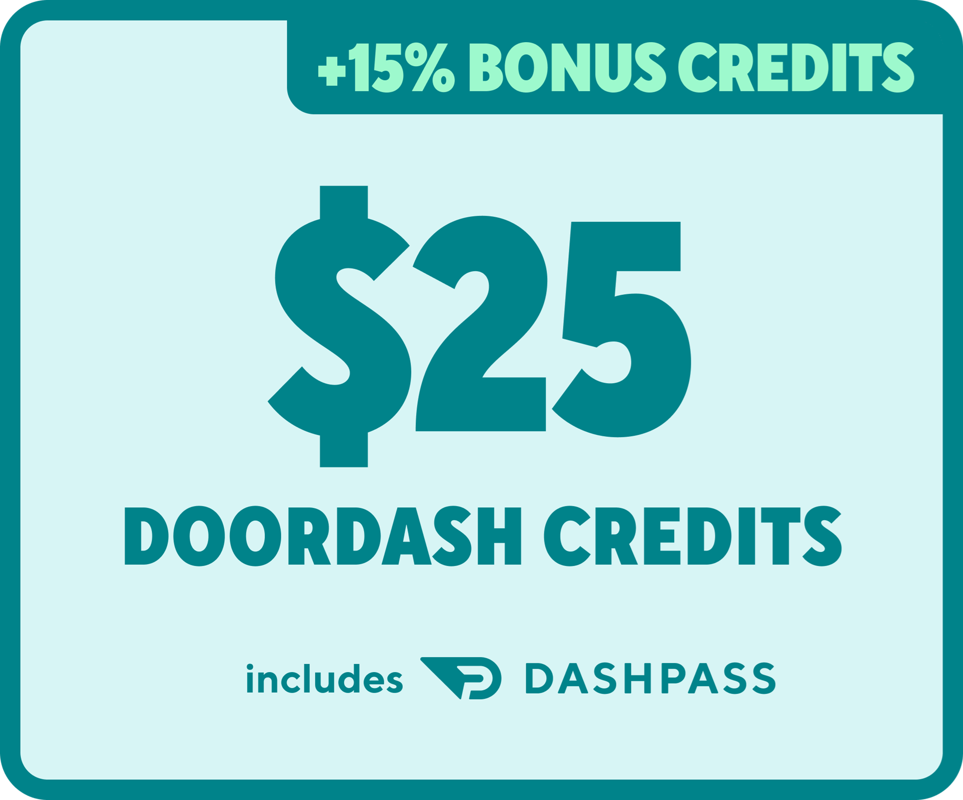 All DoorDash Credits come with 15% Bonus DoorDash Credits